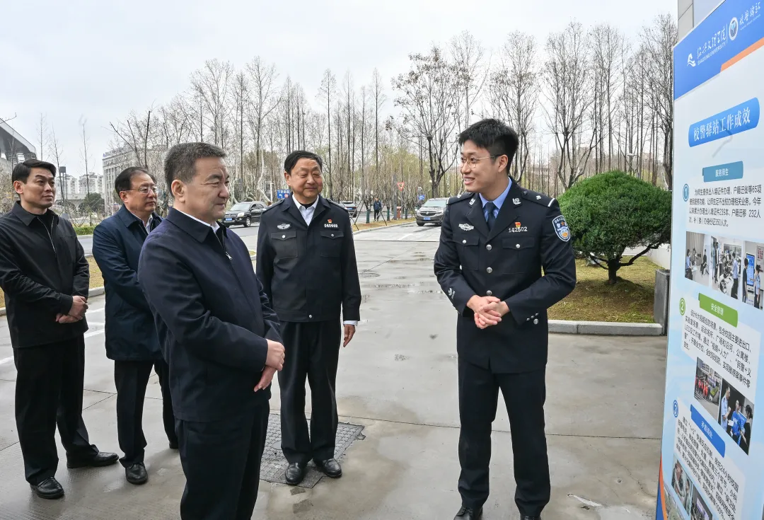 大渡社区是柯桥区柯桥街道最大的社区,居民来自五湖四海,流动人口占70%。王成国来到社区警务室、邻里工坊、爱心驿站、芳语咨询室等,与社区工作人员、居民群众详细交流,为社区探索建立“驻村融治——驻社乐民”工作模式、破解“生人社区”治理难题点赞。他指出,要进一步激发社区居民自治活力,创新社区治理模式,让大家争做平安建设的行动派、不当旁观者,合力守护平安家园,打造新时代“枫桥经验”社区版。
