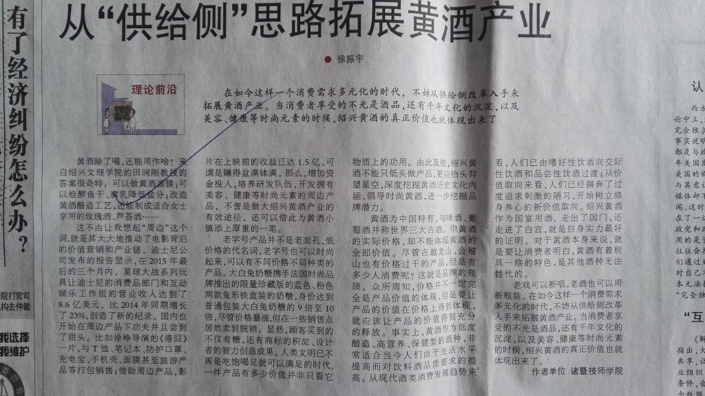 《绍兴日报》:从“侧供给”思路拓展黄酒产业