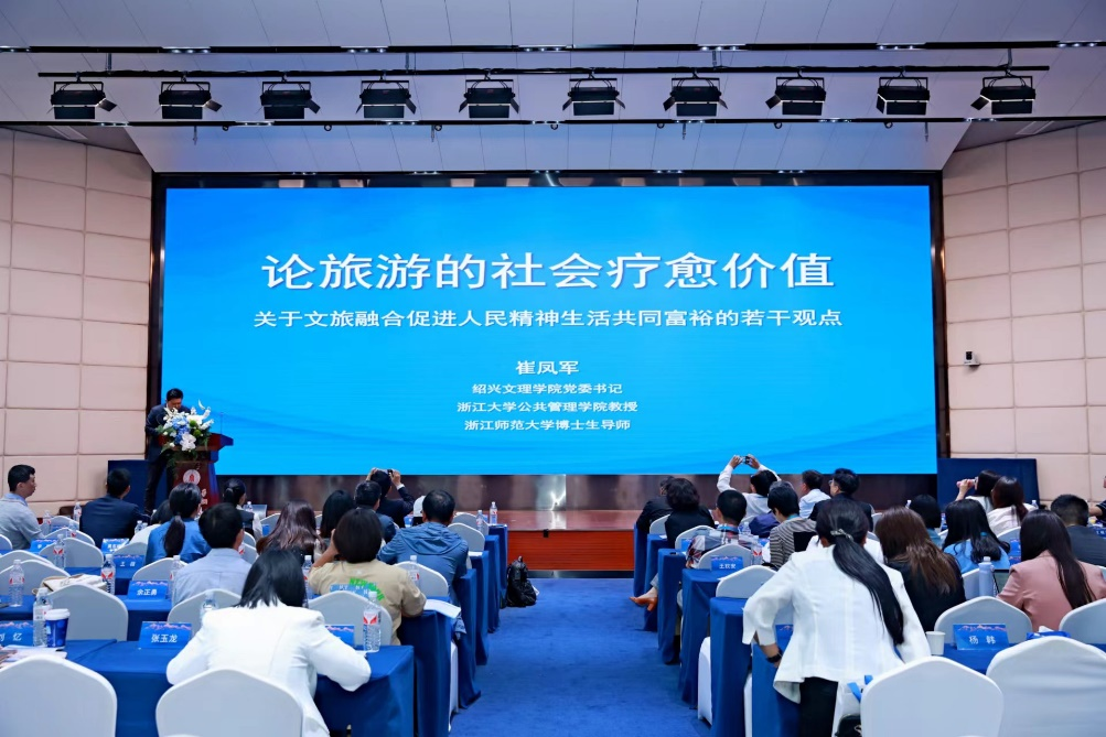 5月11日上午,崔凤军做了题为“论旅游的社会疗愈价值——关于文旅融合促进人民精神生活共同富裕的若干观点”大会主旨报告。报告指出,从现实和人的全面发展、中国式现代化要求来看,人们对发展性需要与高品质生活的需要日益强烈,精神生活富裕已经成为比物质生活富裕更需攻克的难题,实现人民精神生活共同富裕任重而道远,而高质量推进文化和旅游融合,发挥旅游的社会疗愈功能,恰逢其时、正当其用。