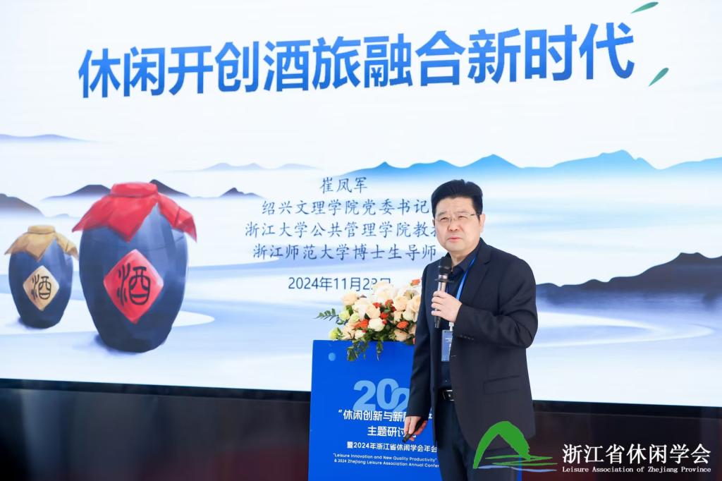 11月23日,由浙江省休闲学会与浙江大学哲学学院共同主办,浙江大学休闲学与艺术哲学研究院承办的“休闲创新与新质生产力”主题研讨会暨2024年浙江正休闲学会年会在杭州湘湖世界旅游博览馆举行。校党委书记、高等人文研究院院长崔凤军应邀出席,并发表了题为《休闲开创酒旅融合新时代》的主旨演讲。中国非遗保护协会会长、文化和旅游部原党组成员王晓峰,浙江省社科联党组书记、副主席郭华巍出席会议并发表致辞,来自国内休闲领域相关学科、高等院校、研究院所、企业等共计100余名代表参加了此次大会。