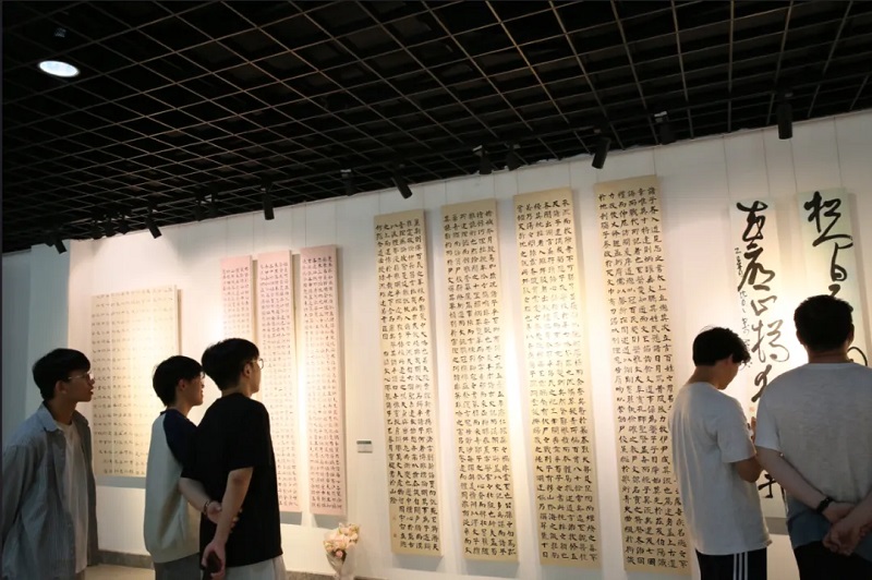 师生们驻足细赏作品,触摸横竖撇捺间流淌的炽热初心,见证毕业生们将青春的诗意与对书法的热爱,化作征途上耀眼的光芒。学院相关指导老师表示,毕业并非终点,而是人生长卷中的转折留白,是崭新篇章的起笔处,愿毕业生们执笔为剑,以墨为锋,在未来的天地间续写“笔下龙蛇舞,志在九重天”的豪情。